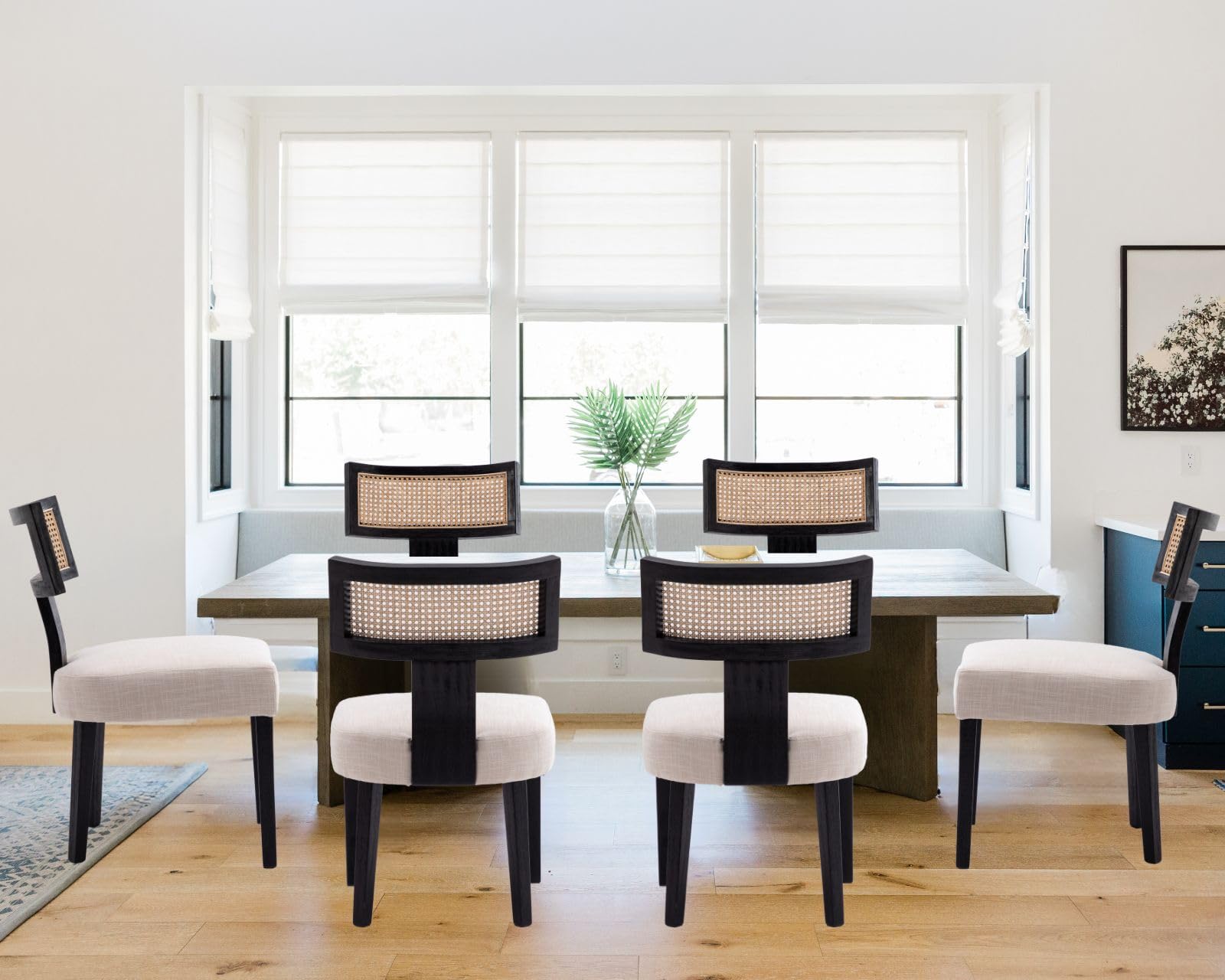 These elegant rattan dining chairs blend Japanese simplicity with modern comfort, making them an excellent choice for any dining space looking for style and practicality.