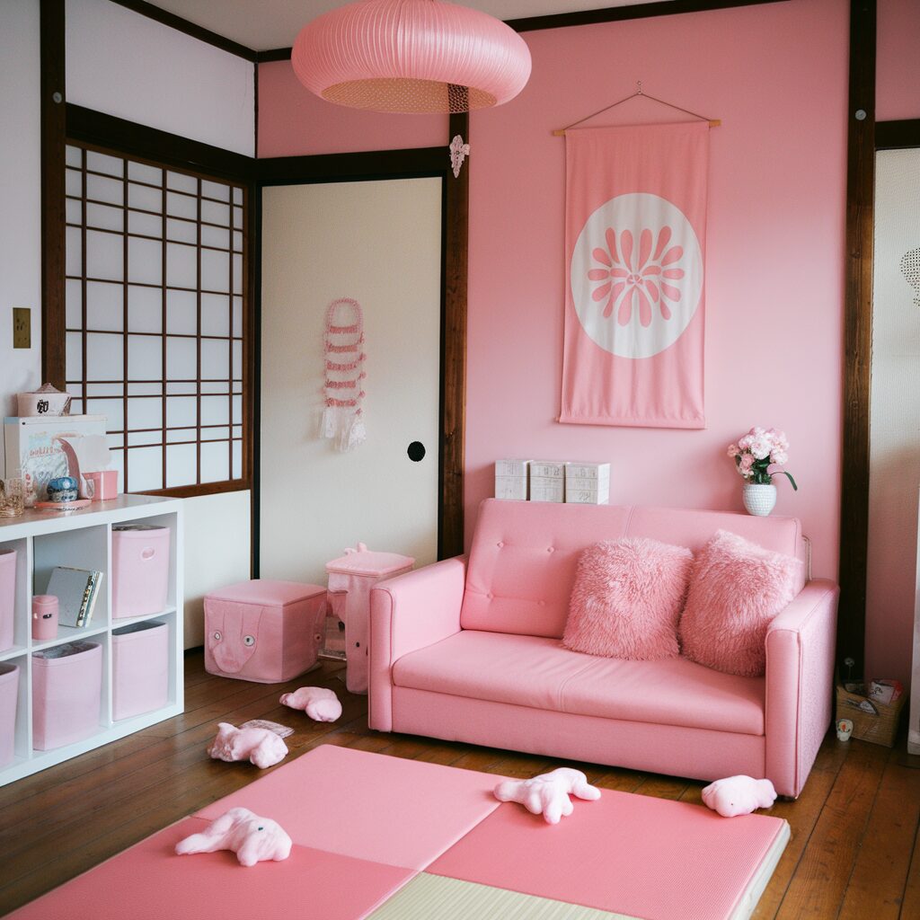 Kawaii decor adds a fun vibe to any Japanese room. Soft pink tones combined with cute plush toys create a cozy atmosphere. Playful patterns and adorable accessories make it a perfect space for relaxation and creativity.