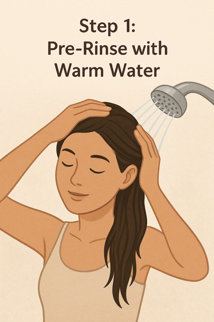🧴 Step 1: Pre-rinse with warm water
