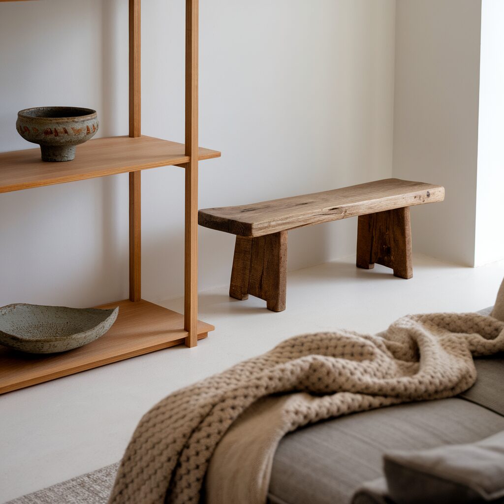 In Japandi, every object earns its place. A bookshelf is not just for books — it’s also carefully curated with a few well-loved objects. A coffee table might double as a quiet focal point, made from hand-finished wood.